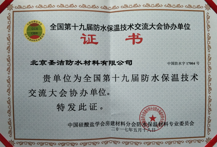 • 中國建筑學會建筑防水學術委員會感謝圣潔防