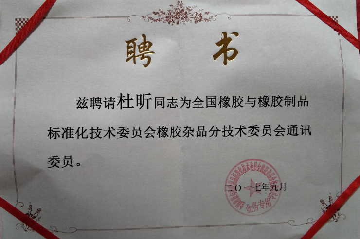 • 杜昕為第八屆全國橡膠與橡膠制品標準化技術