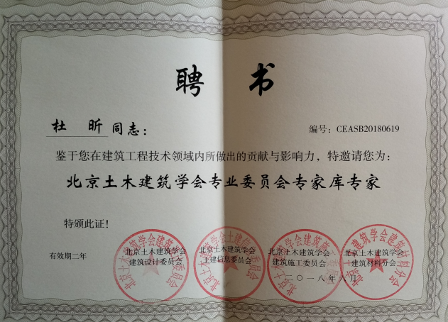 • 杜昕北京土木建筑學會專業委員會專家庫專家
