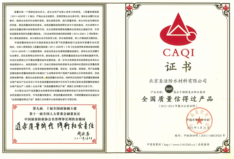 • 進京防水產品供應及施工誠信單位