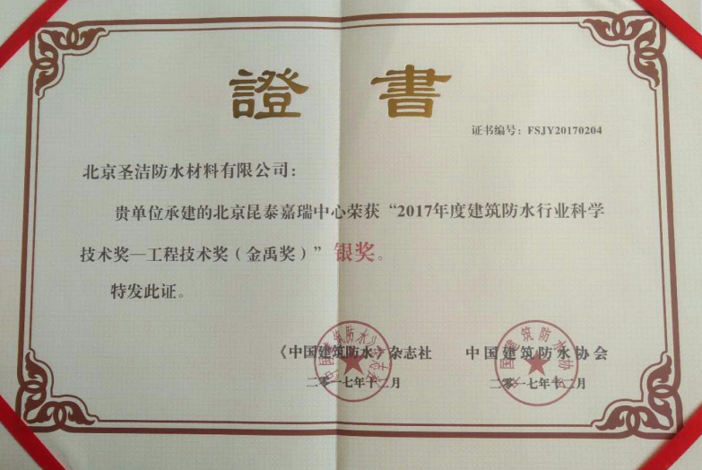 • 中國建筑防水工程“金禹獎”銀獎