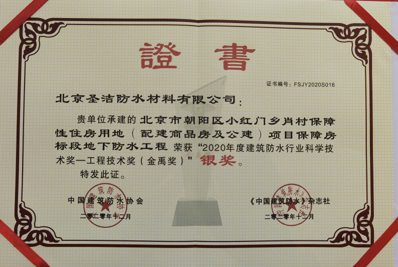 • “2020年度建筑防水行業科學技術獎——