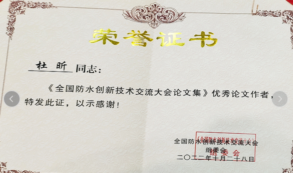 • 杜昕全國防水創新技術交流大會論文集優秀論