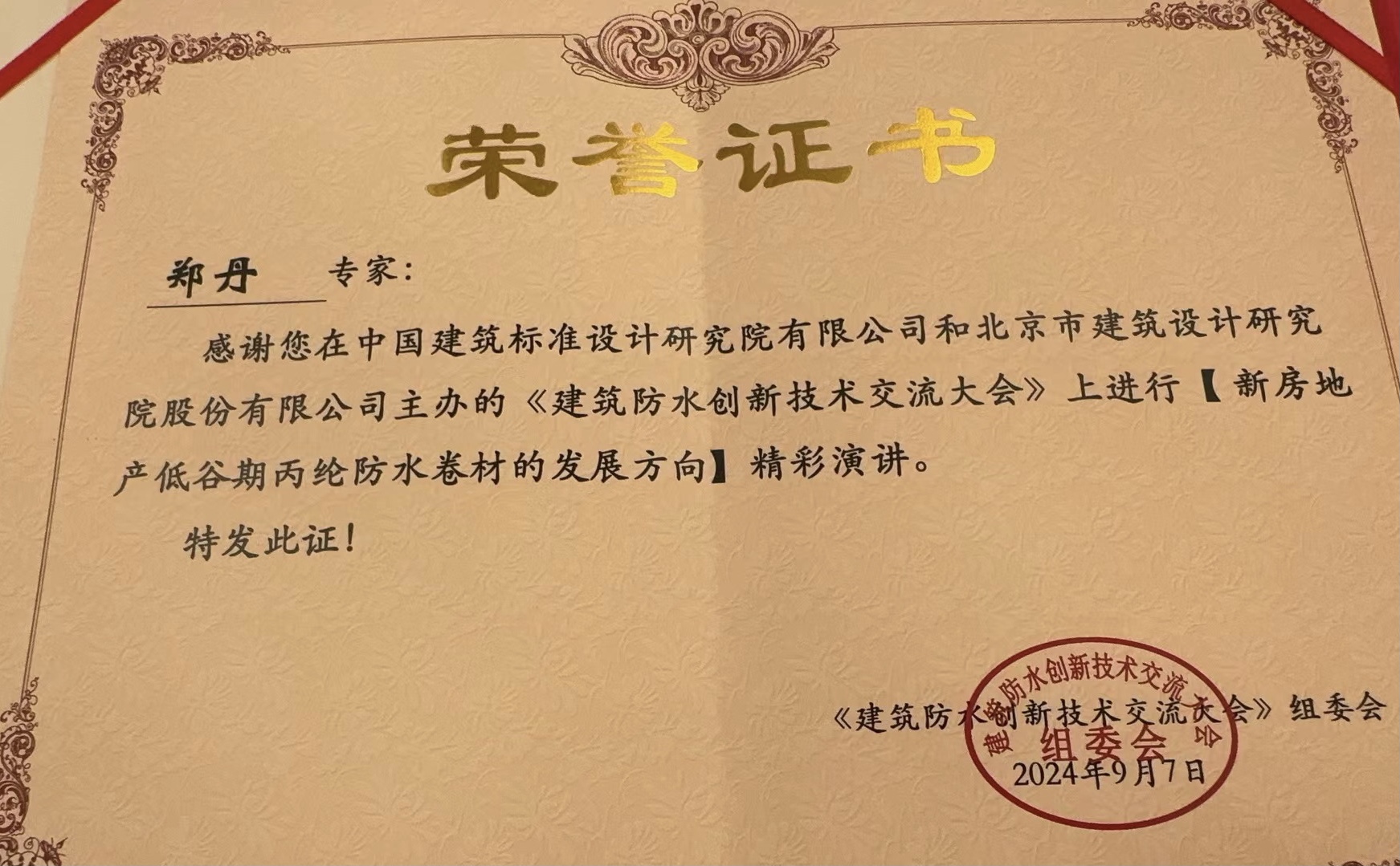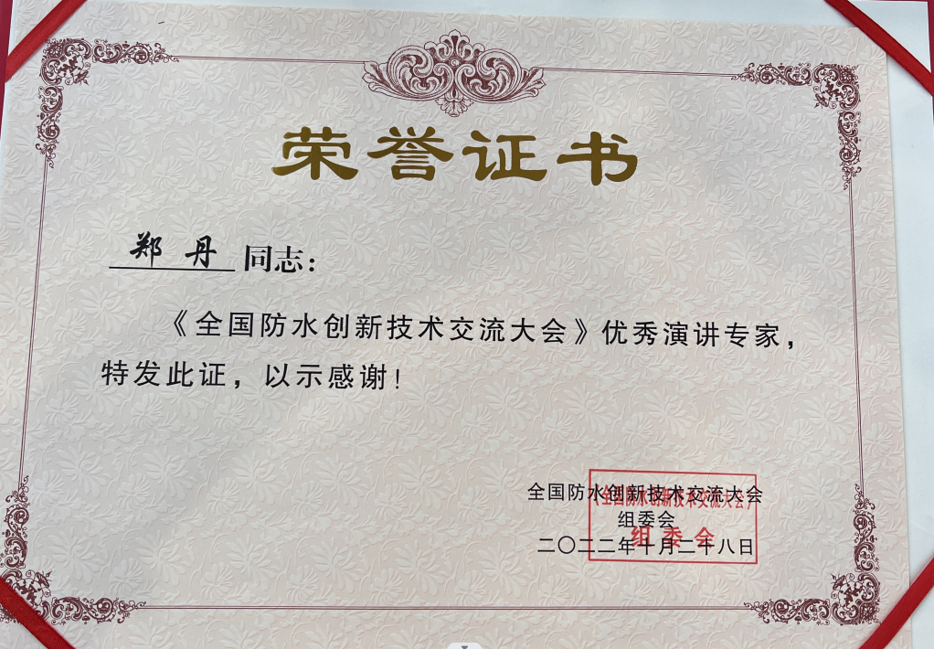 • 鄭丹全國防水創新技術交流大會優秀演講專家