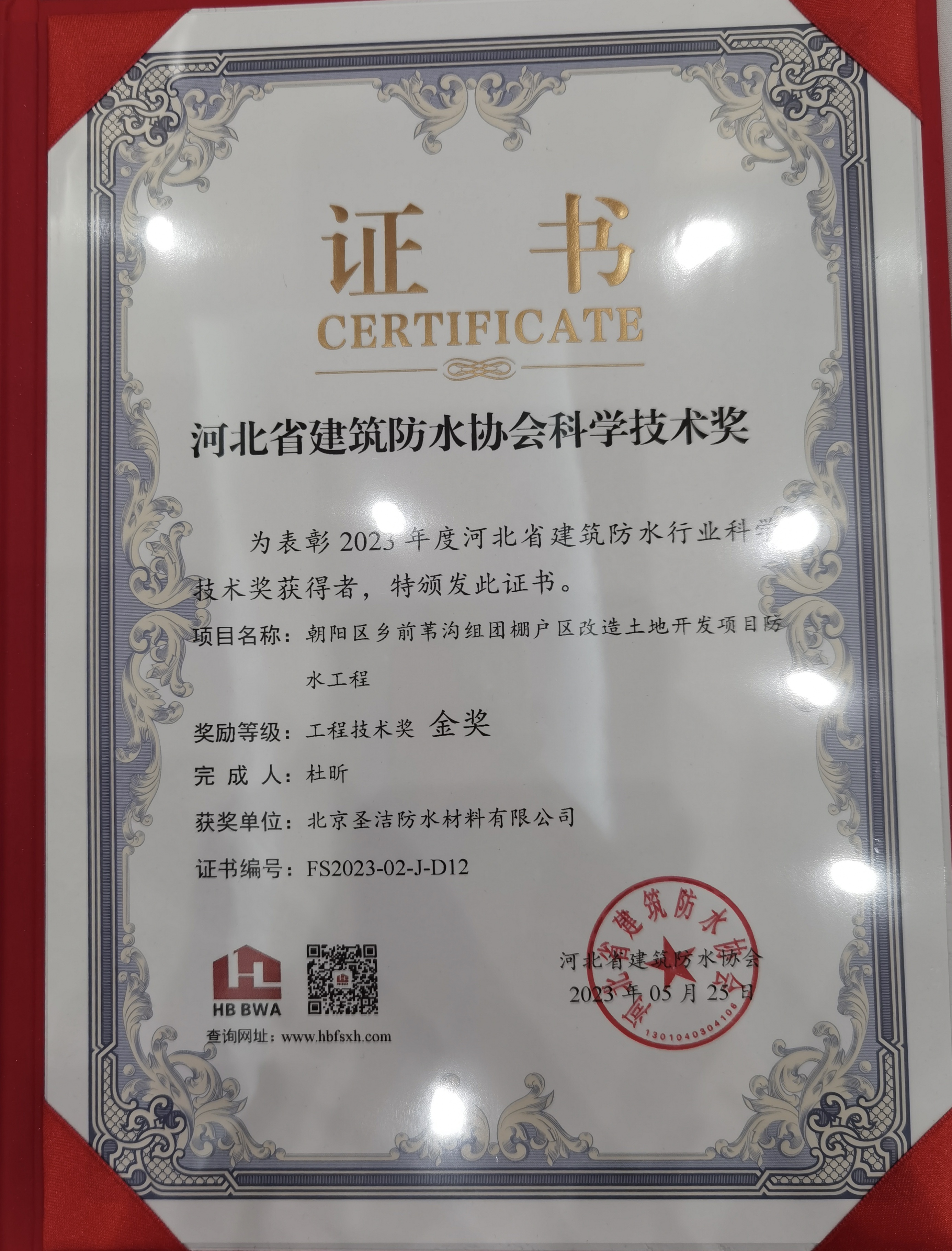 • 杜昕河北防水協會副理事長證書