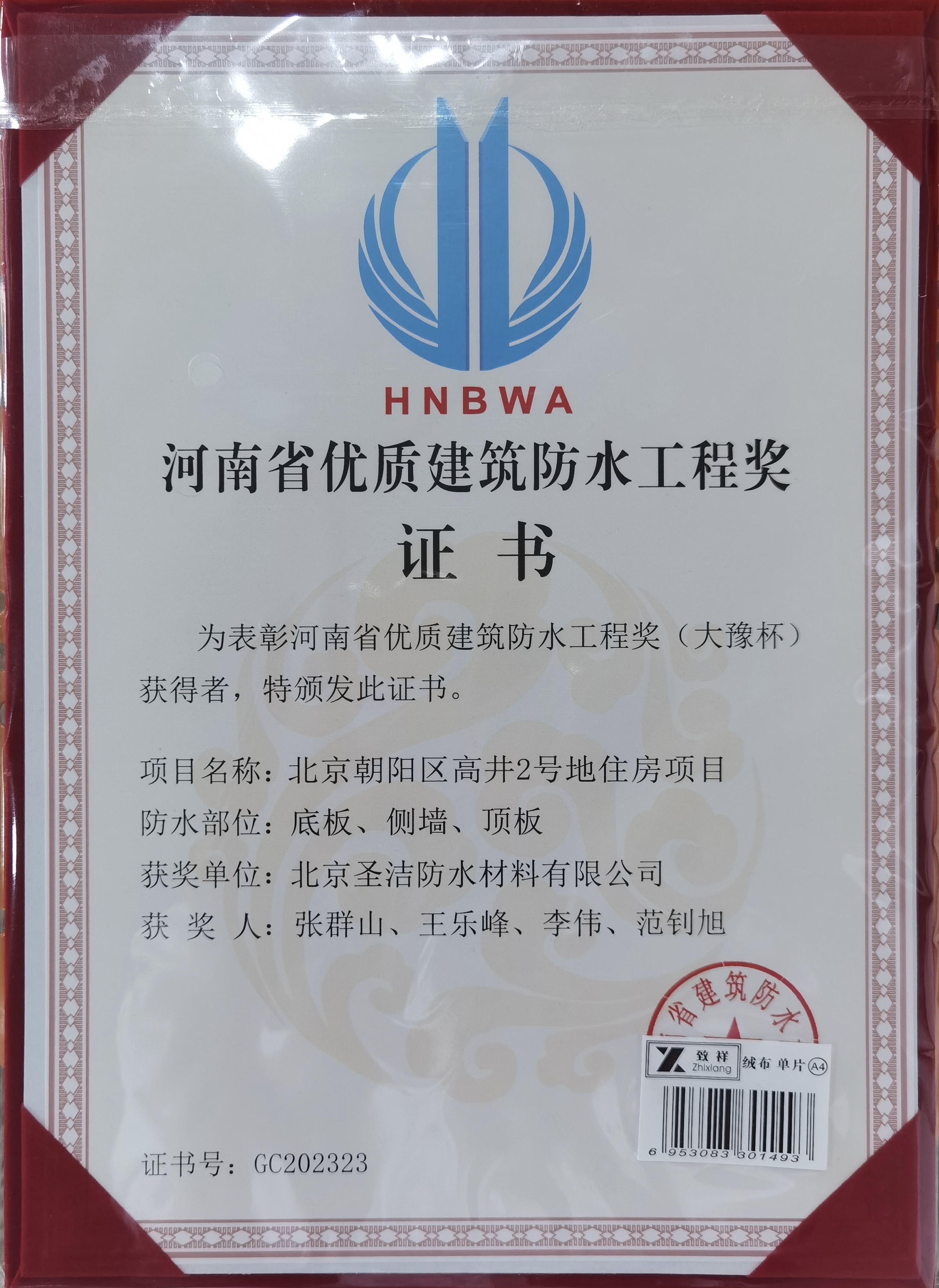 • 河南省優質建筑防水工程獎