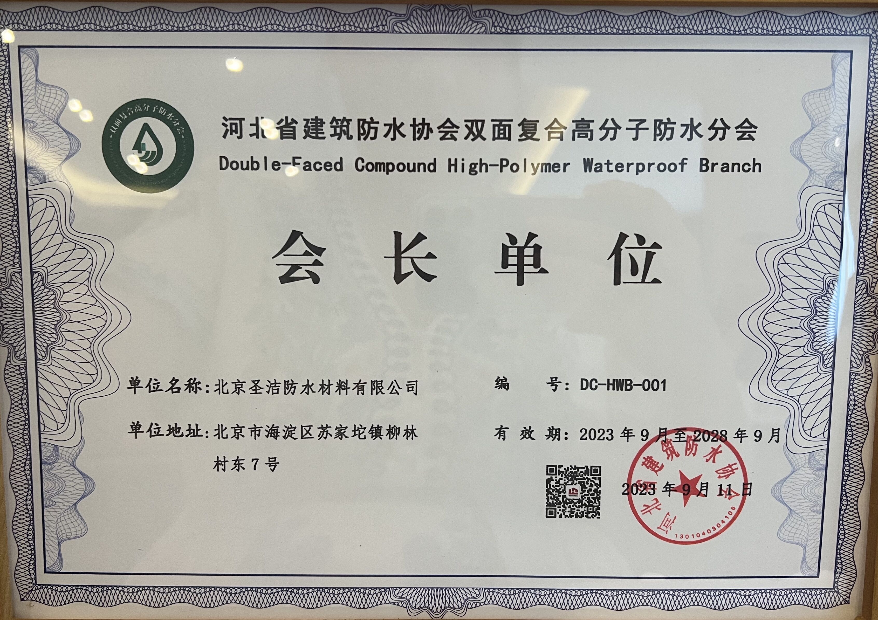 • 圣潔公司河北省建筑防水協會雙面復合高分子